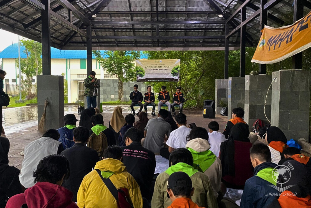 Kegiatan daur ulang sampah plastik dan botol bersama Ecobrick Heroes Kota Bandung di belakang Gedung U kampus 1 UIN Bandung, Jalan A.H. Nasution No. 105, Cibiru, Kota Bandung, Jum’at (8/12/2023). Kegiatan ini merupakan salah satu rangkaian acara Pekan Seni Jurnalistik (PSJ) yang bersinambungan dengan tema yang diangkat yaitu “global warming” dan hasilnya akan dijadikan sebagai gapura pada acara PSJ.