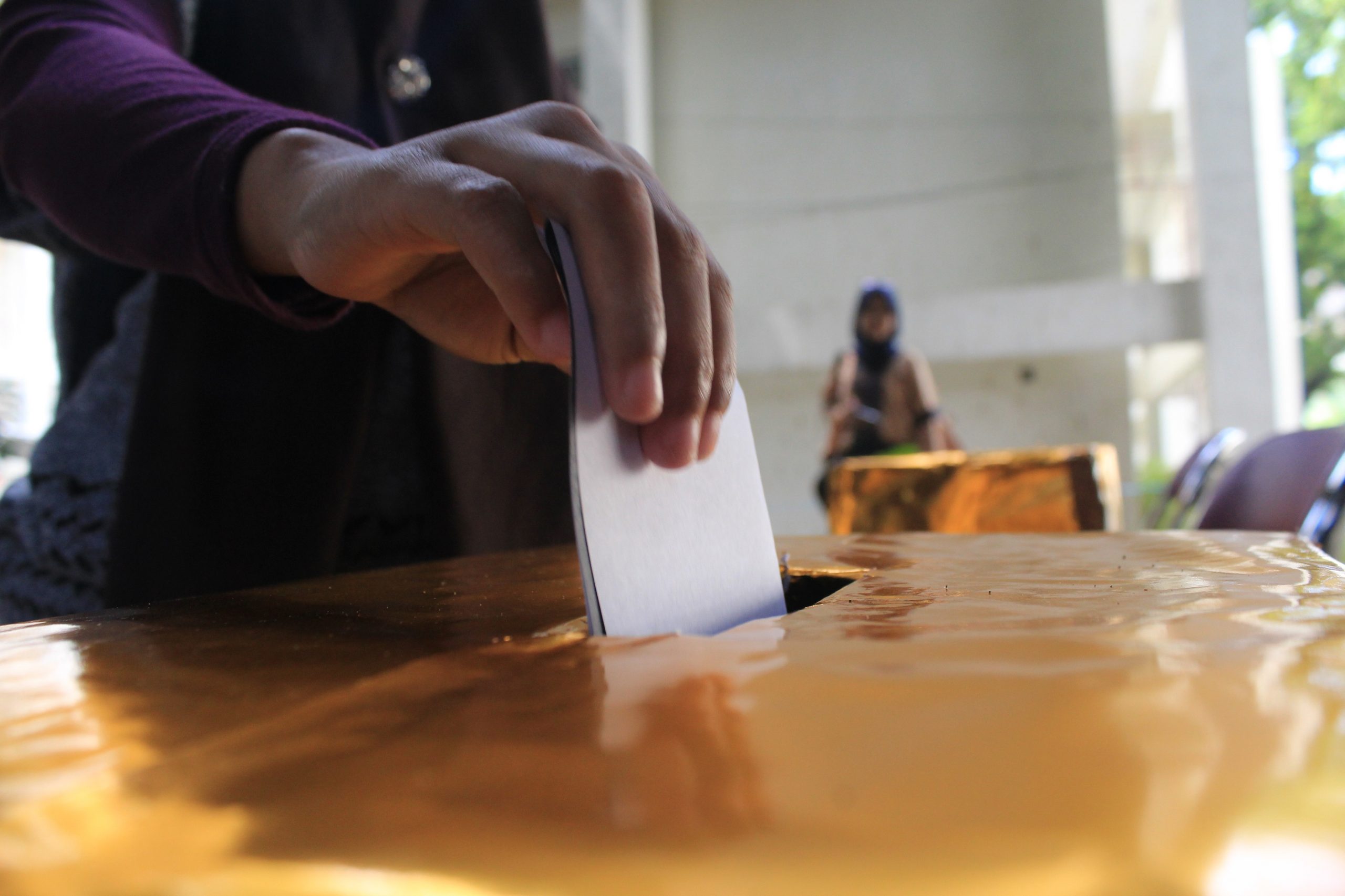 Salah satu mahasiswa Fakultas Dakwah dan Komunikasi memberikan suara dalam pemilihan Dewan Mahasiswa Fakultas (Dema-F) di Dibawah Pohon Rindang (DPR) UIN SGD Bandung, Kamis(23/02/2017). (Pandu Muslim/Jurnalposmedia