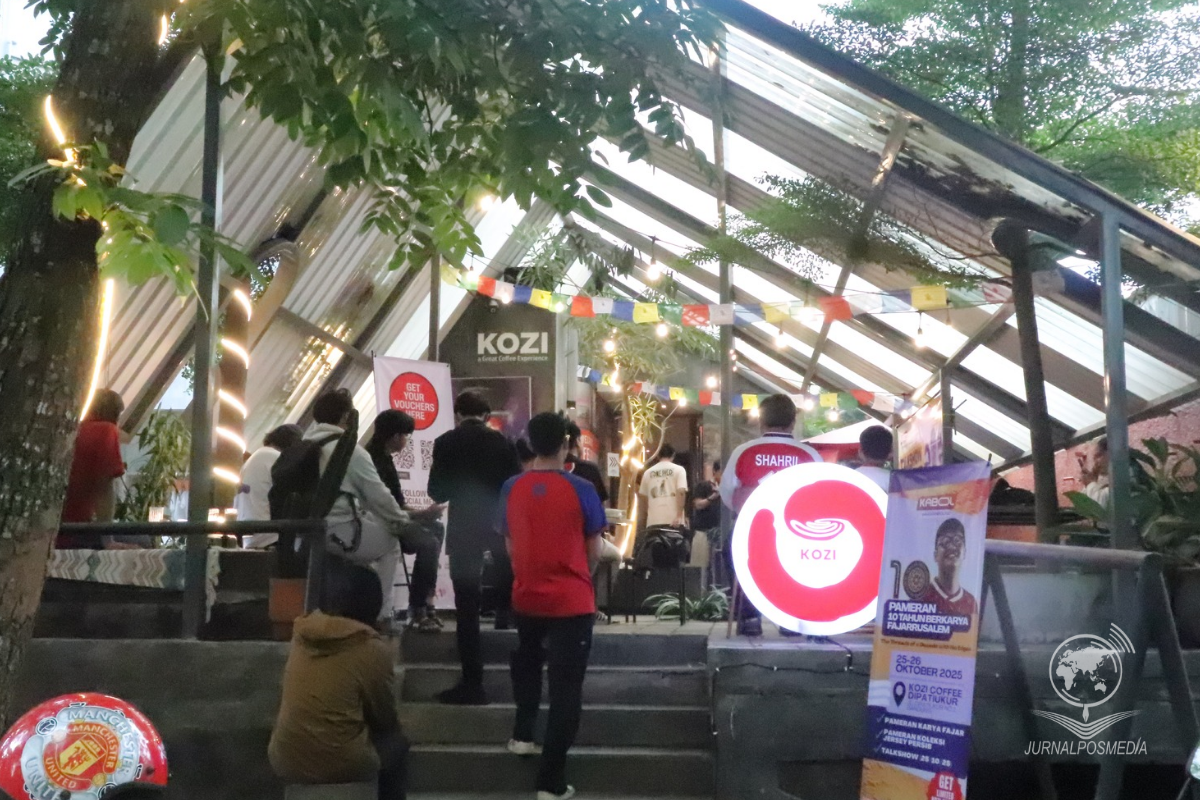Potret MC tengah menyapa audiens sebelum membacakan susunan acara di KOZI Coffee Dipatiukur, Kecamatan Coblong, Kota Bandung Sabtu (25/10/2025). (Raffy Kevin Ardana/Jurnalposmedia)Suasana ramai audiens untuk menghadiri kegiatan talkshow di KOZI Coffee Dipatiukur, Kecamatan Coblong, Kota Bandung, Sabtu (25/10/2025). (Raffy Kevin Ardana/Jurnalposmedia)Koleksi sejumlah jersey kolektor yang dipajang oleh penyelenggara di KOZI Coffee Dipatiukur, Kecamatan Coblong, Kota Bandung, Sabtu (25/10/2025). (Fauzan Rijalulghad Ha Anada/Jurnalposmedia)Potret desainer jersey persib tengah membuat konten bersama kawan bola di KOZI Coffee Dipatiukur, Kecamatan Coblong, Kota Bandung, Jawa Barat Pada Sabtu (25/10/2025). (Fauzan Rijalulghad Ha Anada/Jurnalposmedia)