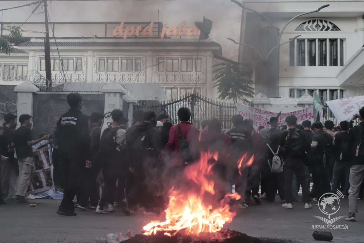 Seorang masa aksi tengah menyampaikan orasinya di depan Gedung DPRD Jawa Barat, Kota Bandung, Jumat (22/11/2025). (Dini Oktaviani Rahayu)Potret iringan para pendemo tengah melakukan Longmarch menuju titik kumpul di depan Gedung DPRD Jawa Barat, Kota Bandung, Jumat (21/11/2025). (Fauzan Rijalulghad Ha Anada)Potret pendemo setelah membakar ban dan mulai mendekati gerbang gedung DPRD Jawa Barat di depan Gedung DPRD Jawa Barat, Kota Bandung, Jumat (21/11/2025). (Fauzan Rijalulghad Ha Anada)Potret para pendemo tengah merangkul satu sama lain untuk saling menguatkan tujuan mereka di depan Gedung DPRD Jawa Barat, Kota Bandung, Jumat (21/11/2025). (Fauzan Rijalulghad Ha Anada)Potret seluruh masa aksi tengah menyimak orasi dari salah seorang masa aksi di depan Gedung DPRD Jawa Barat, Kota Bandung, Jumat (21/11/2025). (Dini Oktaviani Rahayu)Seorang masa aksi tengah menyampaikan orasinya di depan Gedung DPRD Jawa Barat, Kota Bandung, Jumat (22/11/2025). (Dini Oktaviani Rahayu)