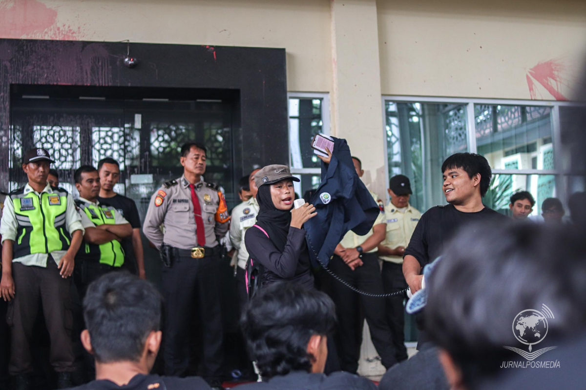 Simbolisasi pembakaran almamater kampus di depan Gedung Rektorat UIN Bandung, Jl. A.H. Nasution, Cipadung Wetan, Kecamatan Cibiru, Kota Bandung, Selasa (25/2/2025). (Rafi Ikhwanudien Muhammad/Jurnalposmedia)Aksi unjuk rasa memakai ponco simbol kualitas almamater di depan Gedung Rektorat UIN Bandung, Jl. A.H. Nasution, Cipadung Wetan, Kecamatan Cibiru, Kota Bandung, Selasa (25/2/2025). (Rafi Ikhwanudien Muhammad/Jurnalposmedia)Aksi unjuk rasa di depan Gedung Rektorat UIN Bandung, Jl. A.H. Nasution, Cipadung Wetan, Kecamatan Cibiru, Kota Bandung, Selasa (25/2/2025). (Rafi Ikhwanudien Muhammad/Jurnalposmedia)Suasana unjuk rasa dipenuhi puluhan massa aksi di depan Gedung Rektorat UIN Bandung, Jl. A.H. Nasution, Cipadung Wetan, Kecamatan Cibiru, Kota Bandung, Selasa (25/2/2025). (Muhammad Raffi Rabbani/Jurnalposmedia)Sejumlah poster yang ditempelkan di kaca Gedung Rektorat UIN Bandung, Jl. A.H. Nasution, Cipadung Wetan, Kecamatan Cibiru, Kota Bandung, Selasa (25/2/2025). (Muhammad Raffi Rabbani/Jurnalposmedia)