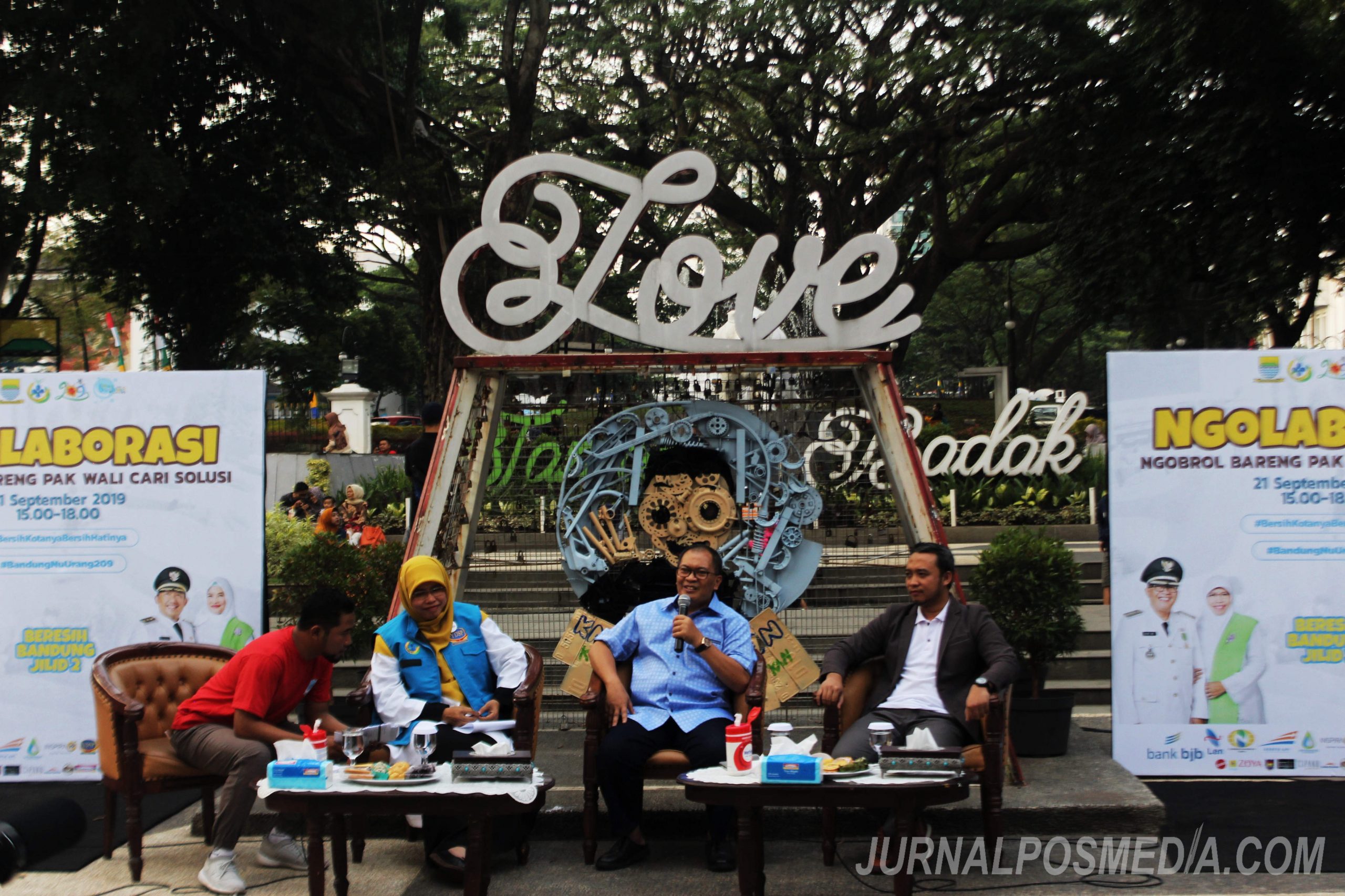 Sejumlah masyarakat mengikuti acara NGOLABORASI (Ngobrol Bareng Pak Wali Cari Solusi) di Taman Balai Kota Bandung, Jalan Wastukencana No 2, Babakan Ciamis, Kecamatan Cisumur, Kota Bandung, Sabtu (21/9/2019). Acara ngolaborasi ini di hadiri oleh Wali Kota Bandung Oded beserta Istrinya yang merupakan inisiator sekaligus ketua dari Forum Bandung Sehat . Dalam acara ini membahas tentang peduli taman dan Open Defecation free (ODF) karena kota bandung menjadi kota no empat terkotor di Indonesia, terhitung nya 35.5 ton tinja dan sampah di sungai.