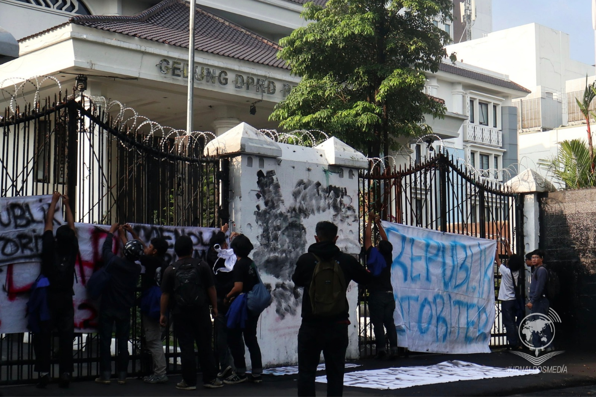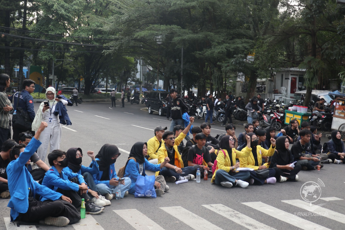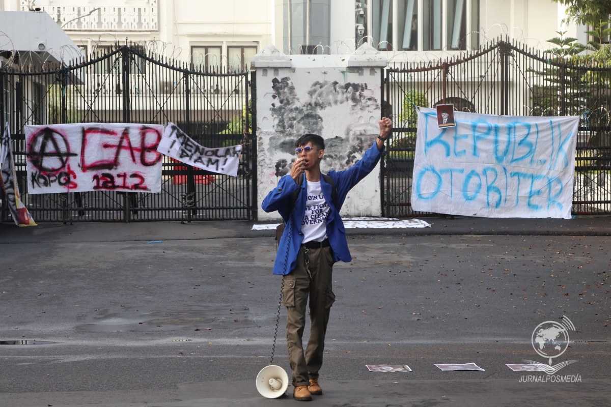 Massa aksi yang tergabung dalam BEM SI Jawa Barat menggelar aksi demonstrasi di depan Gedung DPRD Jawa Barat, Senin (20/4/2026). Aksi ini digelar sebagai buntut tuntutan keadilan atas peristiwa penyiraman air keras terhadap aktivis KontraS, Andrie Yunus. Pada gelaran ini, massa aksi menyampaikan tujuh tuntutan kepada aparat penegak hukum disertai orasi dan aksi simbolik sebagai bentuk protes terhadap lambannya penanganan kasus serta desakan agar pelaku penyiraman segera diusut tuntas.