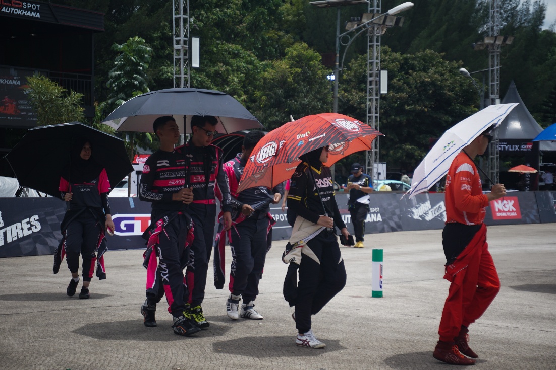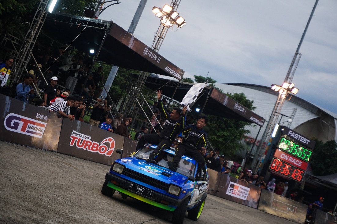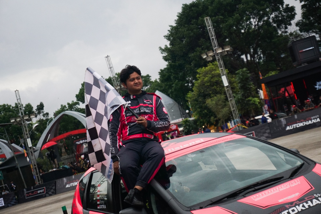 Potret arak-arakan Anjasara Wahyu, juara nasional Final Grup A sebagai pemegang waktu tercepat diangka 00.36,365 dan Alinka Hardianti sebagai juara nasional Grup Wanita dengan waktu tercepat diangka 00.37,350 di putaran terakhir di sirkuit Sport Jabar Arcamanik, Bandung, Sabtu (8/11/2025). Bandung menjadi lokasi putaran terakhir digelarnya Kejuaraan Nasional MLDSPOT Autokhana 2025, dengan tagline “Burn Your Tires”. Olahraga Slalom mobil ini bertujuan untuk meregenerasi agar olahraga slalom tetap ada dan memperkenalkan secara luas kepada masyarakat. Kejurnas yang diikuti oleh kurang lebih 133 orang ini dimulai dengan Heat 1 dan 2, kelas Tandem, final grup B, final grup A dan kelas wanita, penampilan freestyle Toyota GR 86, final grup F, serta Efek Rumah Kaca dan Shaggydog sebagai hiburan penutup dari acara MLDSPOT Autokhana 2025.