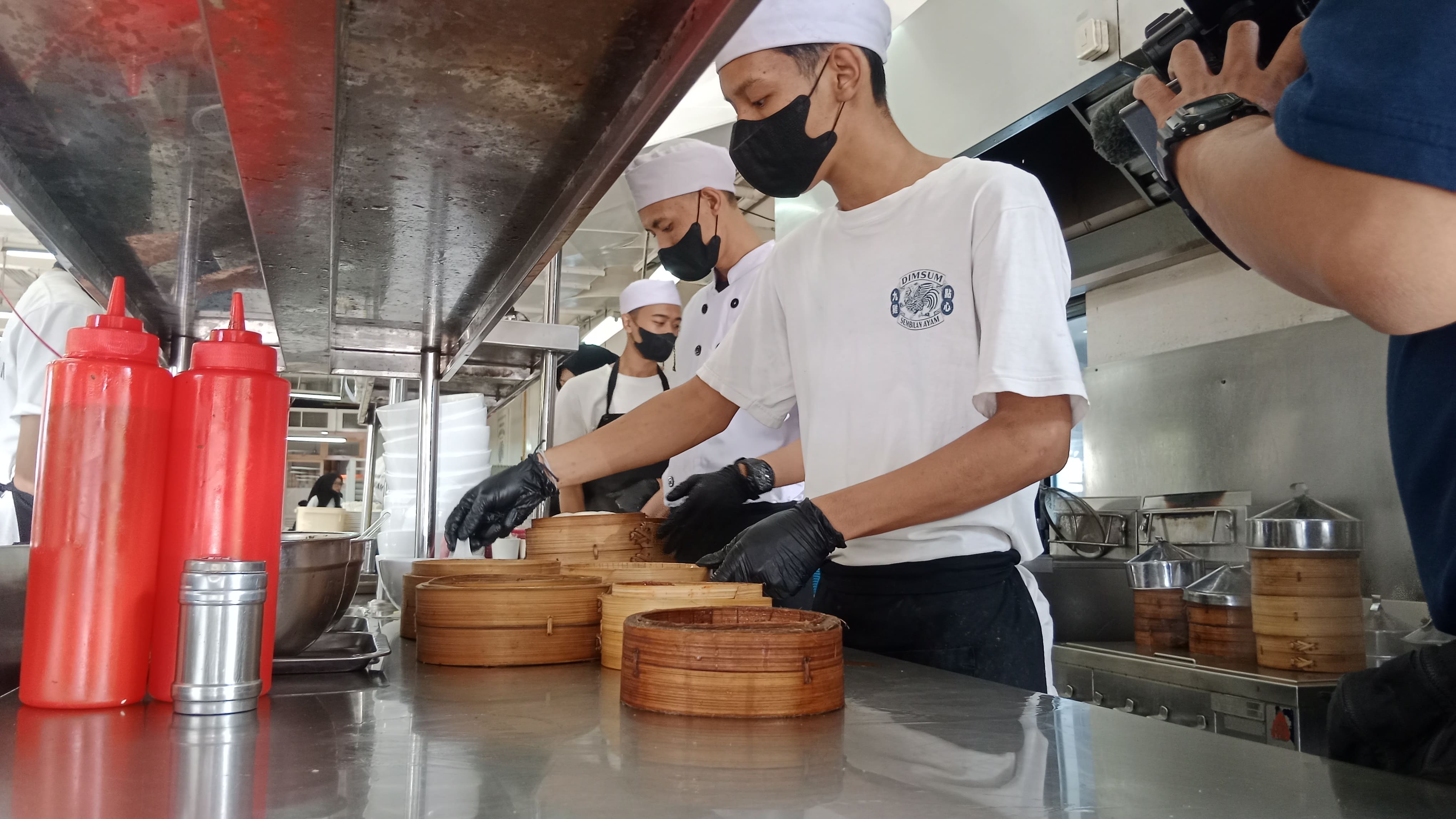 Pegawai dapur tengah menyiapkan pesanan para pengunjung di Dimsum Sembilan Ayam, Kamis (5/2/2026).
