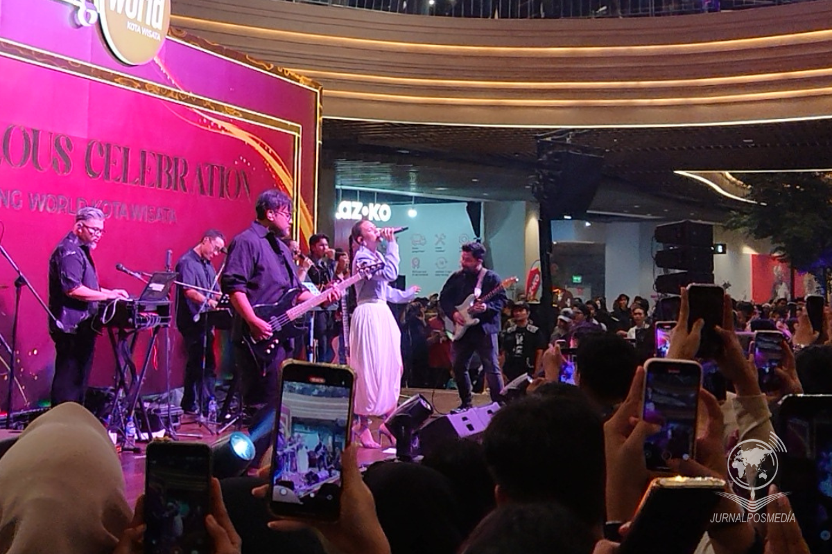 Momen Raisa tengah menghibur para pengunjung Mal Living World, Cibubur, pada Sabtu (26/7/2025). Konser bertajuk “Marvelous Celebration” yang diselenggarakan oleh Living World ini menjadi bagian dari promosi program diskon belanja hingga 70% untuk menarik minat pengunjung.