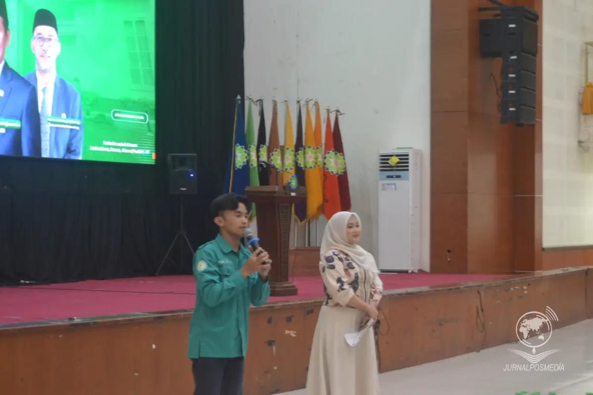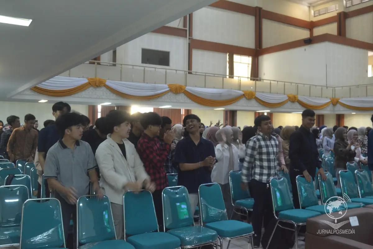 Mahasiswa Jurusan Ekonomi Syariah, tengah mengikuti sesi ice breaking di Aula Anwar Musaddad, UIN Bandung, Kamis (16/4/2026).