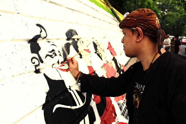 Ali (28) salah satu warga Kota Bandung sekaligus anggota Kabuyutan Gegerkalong berpartisipasi melukis tembok sepanjang 476 meter di Jalan Siliwangi, Kota Bandung, Selasa, (13/9/2016). Kegiatan ini digelar untuk merayakan hari jadi Kota Bandung yang ke-206 dan menyambut PON XIX 2016. (Jurnalpos/Syawal Febrian).