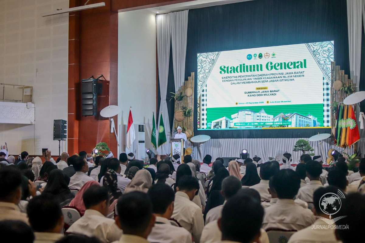 Penyampaian kuliah umum oleh Gubernur Jawa Barat, Kang Dedi Mulyadi di Aula Anwar Musaddad, UIN Bandung, Jalan A.H Nasution, Kota Bandung, Selasa (23/9/20225). Kuliah umum yang bertujuan bangun Sinergitas Pemerintah Daerah Provinsi Jawa Barat dengan Perguruan Tinggi Keagamaan Islam Negeri (PTKIN) dalam ciptakan SDM Jabar istimewa, dihadiri langsung oleh Gubernur Jawa Barat, Kang Dedi Mulyadi. Acara tersebut menjadi momen penyampaian aspirasi serta kritik dari Ketua Umum Mahapeka, M. Hanif Rahman dan Presiden Mahasiswa, Haminuddin Nasir mengenai ditangkapnya demonstran oleh kepolisian pada gelaran aksi sebelumnya.