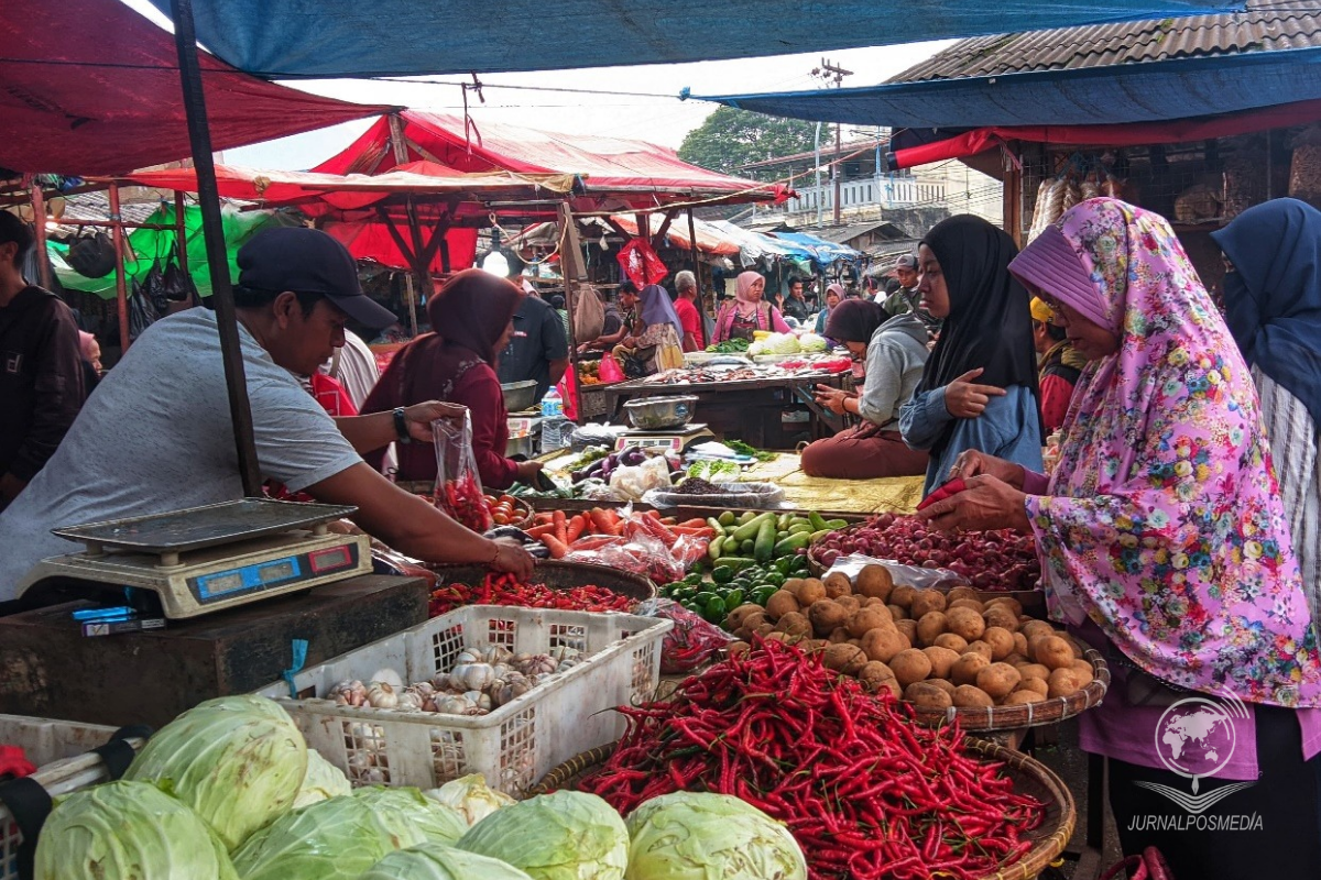 Kerumunan pembeli memenuhi area pasar yang berlokasi di Pasar Ujung Berung Jl. Jendral Abdul Haris Nasution, Pasirwangi, Kecamatan Ujung Berung, Kota Bandung, Minggu (1/6/2025). Menjelang Hari Raya Iduladha, harga bahan pangan khususnya cabai merah keriting, kembali alami lonjakan hingga Rp60.000 per kilogram dibanding bulan sebelumnya yang hanya Rp30.000 per kilo. Di Pasar Ujung Berung, Jl. Jendral Abdul Haris Nasution, Pasirwangi, Kecamatan Ujung Berung, Kota Bandung, Minggu (1/6/2025 ).