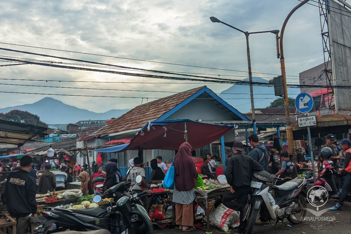 Potret penjual dan pembeli yang tengah melakukan transaksi di pasar Ujung Berung, Jl. Jendral Abdul Haris Nasution, Pasirwangi, Kecamatan Ujung Berung, Kota Bandung, Minggu (1/6/2025).