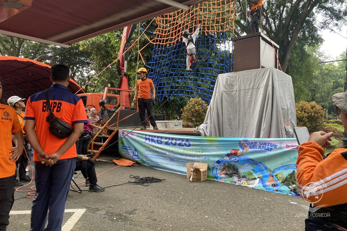 Pemerintah Kota Bandung menggelar talkshow terkait materi kesiapsiagaan bencana dengan menghadirkan narasumber dari Badan Penanggulangan Bencana Daerah (BPBD) Jawa Barat dan perwakilan dari Institut Teknologi Bandung di Balai Kota Bandung, Minggu (26/4/2026). Serangkaian kegiatan tersebut yang dapat dihadiri oleh masyarakat umum, lembaga pendidikan, dan komunitas lokal, dengan tujuan meningkatkan pemahaman dan kesiapan warga dalam menghadapi potensi bencana.