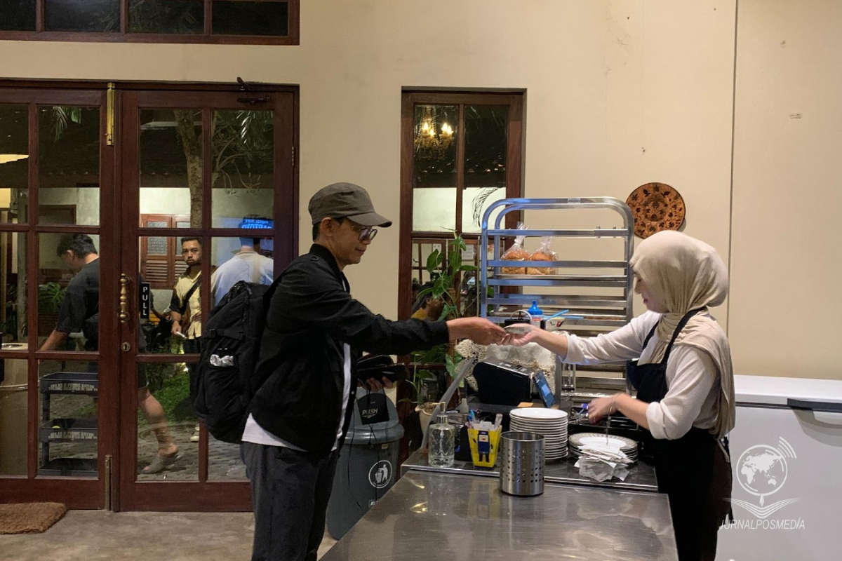 Seorang pengunjung memesan menu di Pabrik Kopi Dartoyo, Jalan Naripan, Kecamatan Sumur Bandung, Kota Bandung, Jumat (25/7/2025).Seorang pelanggan melakukan transaksi dengan pegawai Pabrik Kopi Dartoyo, Jalan Naripan, Kecamatan Sumur Bandung, Kota Bandung, Jumat (25/7/2025).Pegawai Pabrik Kopi Dartoyo tengah membuat roti di dapur terbuka, Jalan Naripan, Kecamatan Sumur Bandung, Kota Bandung, Jumat (25/7/2025).Pelanggan tengah melakukan Work From Cafè di Pabrik Kopi Dartoyo, Jalan Naripan, Kecamatan Sumur Bandung, Kota Bandung, Jumat (25/7/2025).Potret alat Roasting biji kopi yang berada di Pabrik Kopi Dartoyo, Jalan Naripan, Kecamatan Sumur Bandung, Kota Bandung, Jumat (25/7/2025).