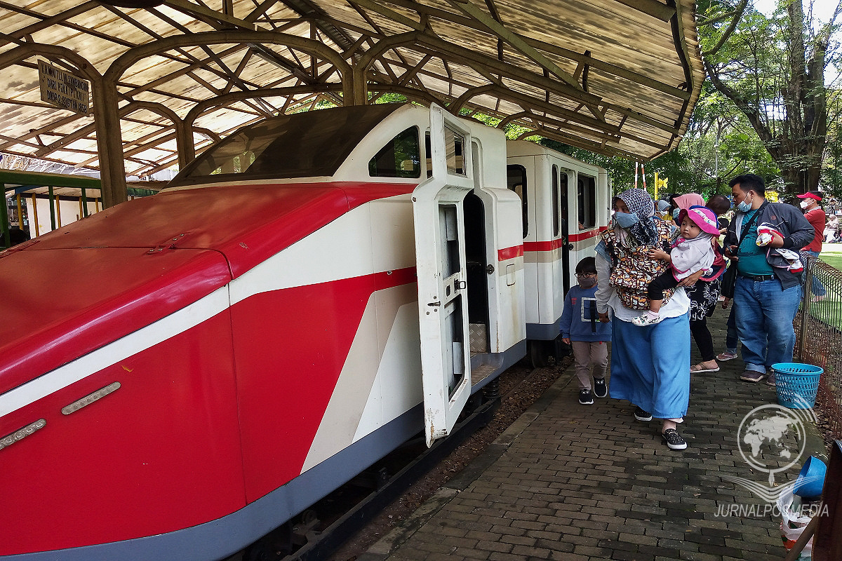 Pengunjung melihat fasilitas yang ada di Taman Lalu Lintas, Jalan Belitung, Kota Bandung, Sabtu (28/5/2022). Selama pandemi covid-19 mewabah, taman lalu lintas tidak beroperasi dan kembali dibuka untuk umum setelah pemerintah melonggarkan aturan penerapan protokol kesehatan.