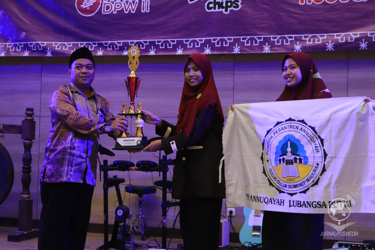 Penyerahan piala Juara Umum Gradasi 2024 oleh Dekan Fakultas Adab dan Humaniora kepada Pondok Pesantren Annuqayah Lubangsa Putri Madura, Aula Abdjan Soelaeman, Kampus I UIN Bandung, Kamis (13/6/2024).