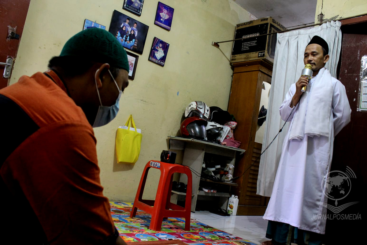 Khotib menyampaikan pesan dalam khutbahnya di Jl. Rayabarat, Kelurahan Padasuka, Kecamatan Cimahi Tengah, Cimahi, Selasa (20/7/2021). Dalam pelaksanaan Pemberlakuan Pembatasan Kegiatan Masyarakat (PPKM), pemerintah menganjurkan sholat Ied dilaksanakan di rumah masing-masing guna mencegah penyebaran Covid-19.