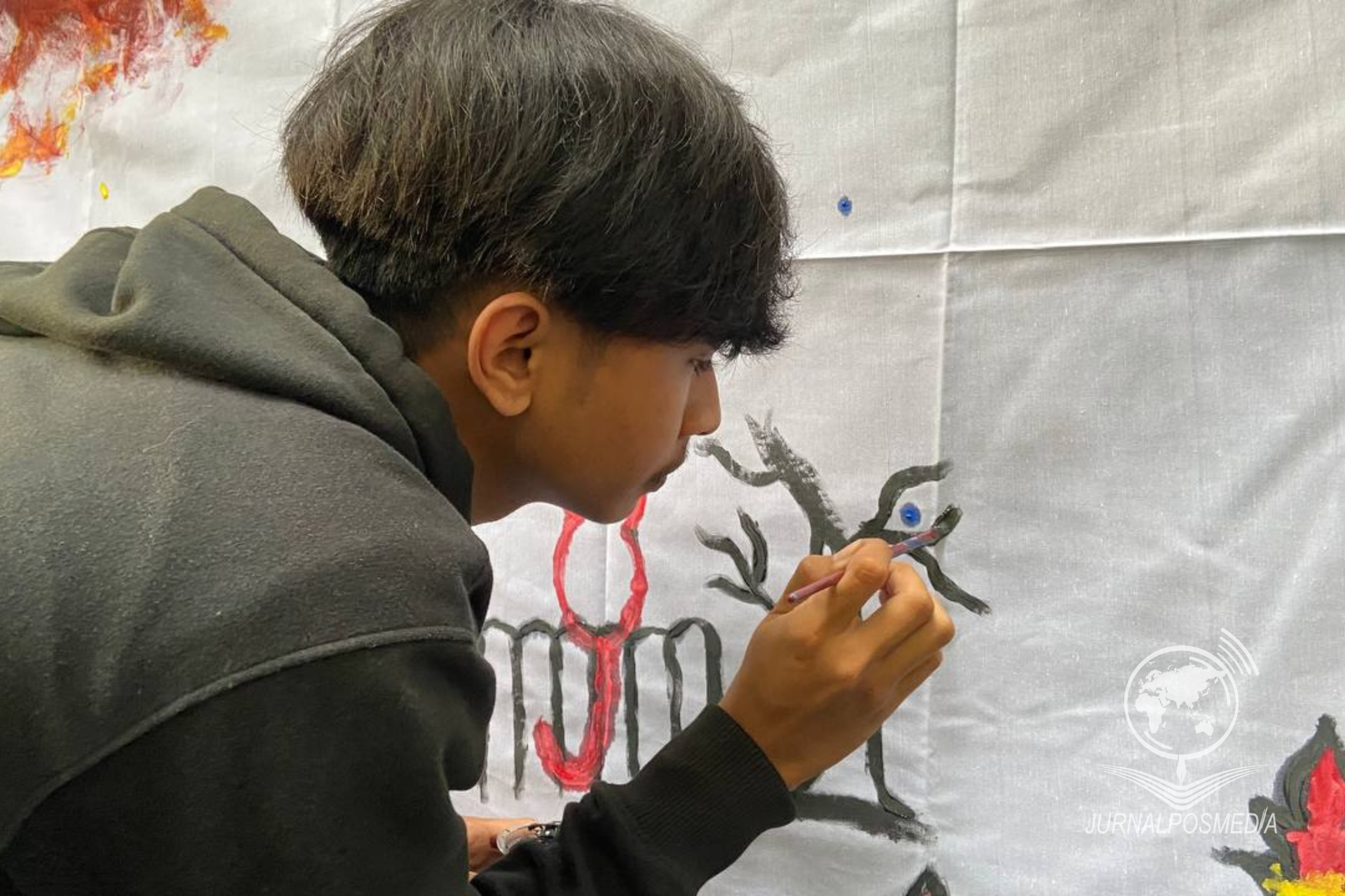 Pengunjung tengah melukis pada acara “Puasa itu Ber-Art” yang diadakan oleh bidang seni Hima Jurnalistik UIN Bandung, bertempat Dibawah Pohon Rindang (DPR), UIN Bandung Jalan A. H. Nasution No. 105, Cibiru, Kota Bandung, Rabu (29/03/2023). Selain melukis, pada acara ini pun diadakan pajang karya, prakarya tanah liat, monolog, buka puisi hingga buka puasa bersama, dan penampilan sedetik musik.