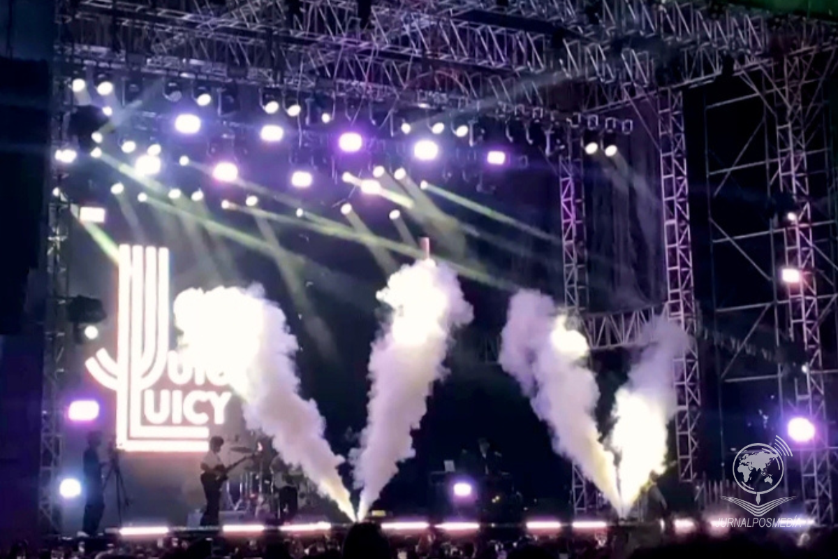 Potret suasana meriah area panggung utama ‘Tau-Tau Festival Vol. 4’ yang dipadati penonton, di Tritan Point Space, Jl. Raya Cipadung, Kecamatan Cibiru, Kota Bandung, Sabtu (31/5/2025). Festival musik tahunan ini berlangsung selama dua hari dan menghadirkan sejumlah musisi populer pada hari pertama, seperti Nadin Amizah, Lomba Sihir, Perunggu, Hivi!, hingga Juicy Luicy.