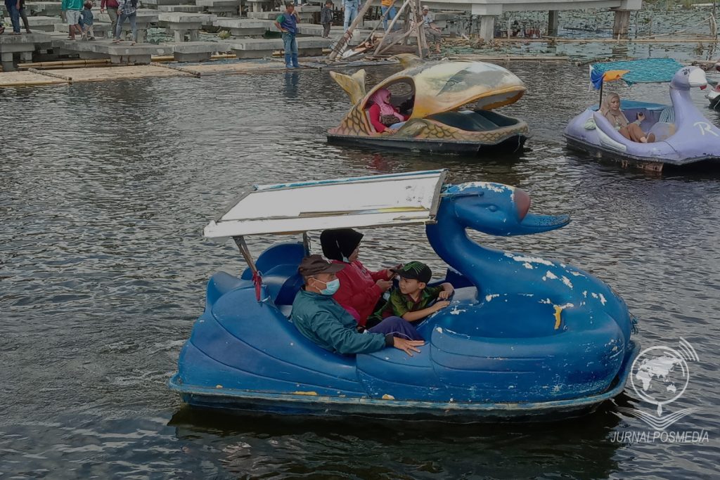 Sejumlah pengunjung mencoba salah satu wahana yang ada didalam Gedung Puspa Iptek Sundial di Kota Baru Parahyangan, Padalarang, Sabtu (27/4/2019). Dengan wahana yang mengutamakan Pendidikan terdapat 180 alat peraga interaktif dan Gedung ini sudah mendapat kan penghargaan dari Museum Rekor Indonesia (MURI) dalam kategori Jam Matahari Horizontal Terbesar di Indonesia dan Jam Matahari Vertikal dan Horizontal Terpadu Pertama di Indonesia.