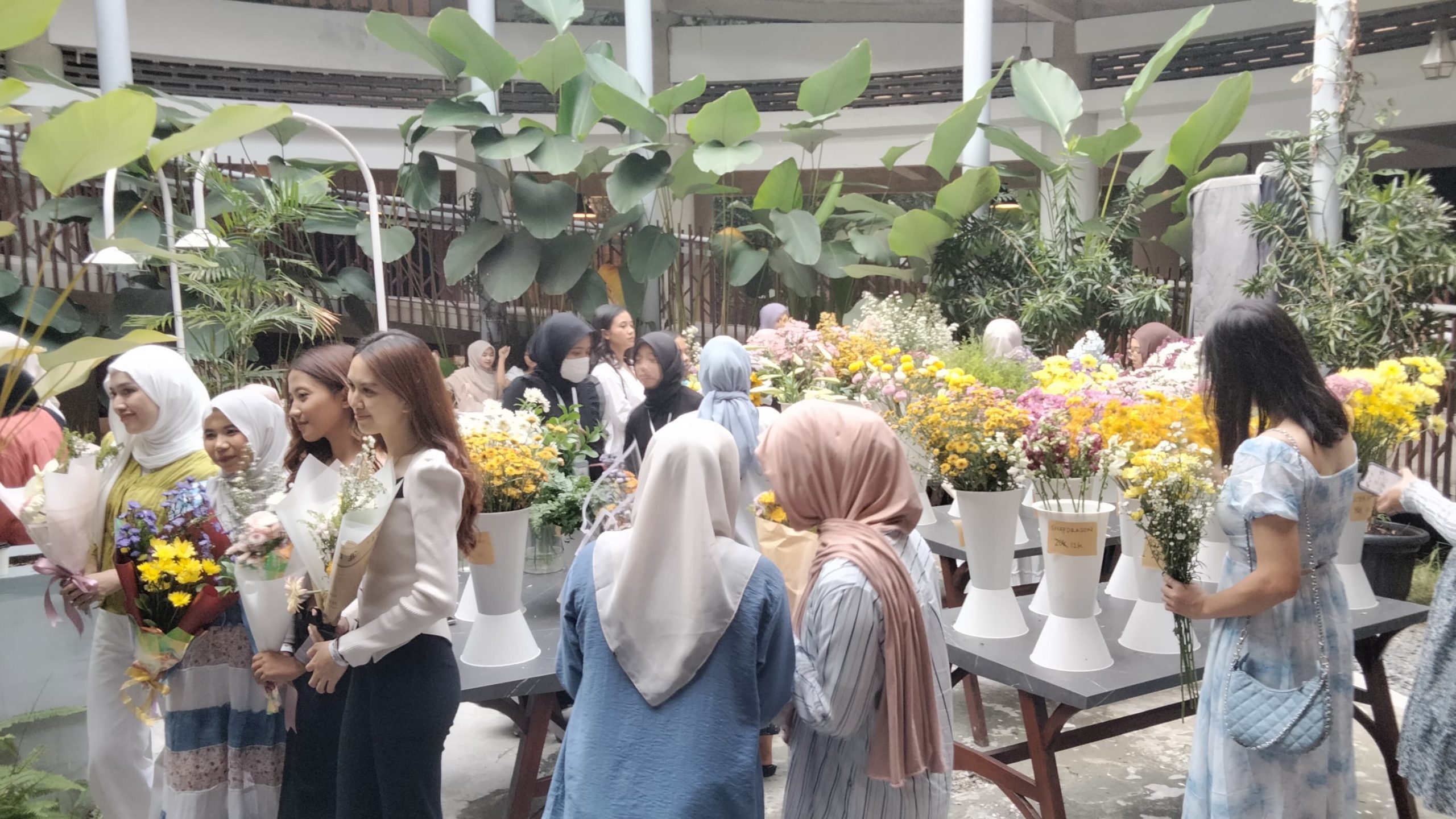 “Aku tahu acara ini dari TikTok, karena menarik jadi aku mengajak teman. Ternyata acara ini seru banget, melihat bunga-bunga dan pada saat memilih-milih bunga sempat kebingungan saking banyaknya bunga yang bagus-bagus dan fresh. Hal ini juga menjadi pengalaman baru buat aku, merangkai bunga,” ungkapnya.