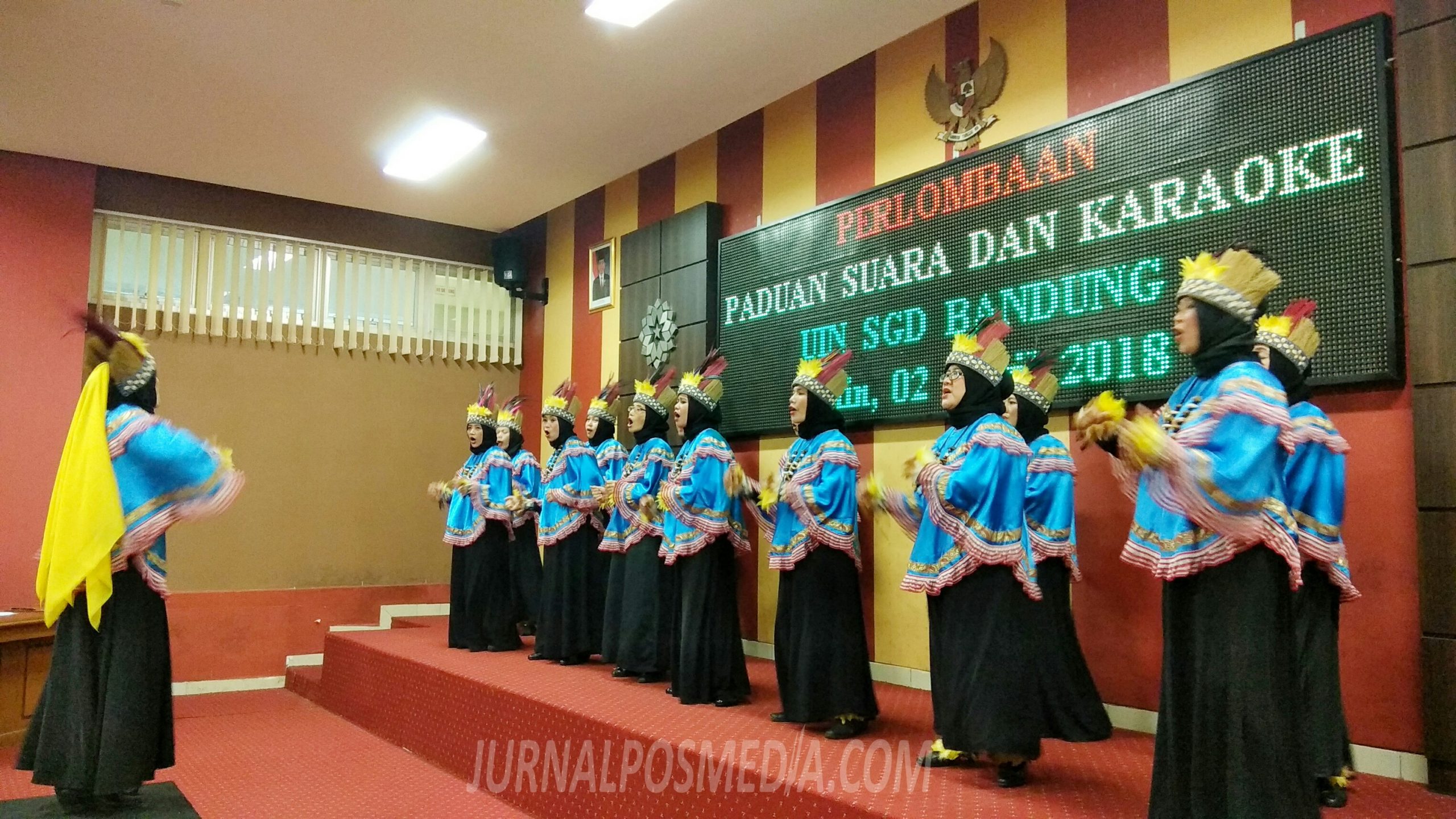 JURNALPOSMEDIA.COM–Tim Paduan Suara (Padus) Fakultas Dakwah dan Komunikasi (FDK) berhasil memenangkan lomba paduan suara dalam Lomba Paduan Suara dan Karaoke Antar Civitas Akademika UIN Bandung, Senin (02/04/2018). Dengan membawakan Hymne UIN sebagai lagu wajib dan Yamko Rambe Yamko sebagai lagu pilihan, menghantarkan padus FDK menjadi juara pertama dalam ajang tersebut.