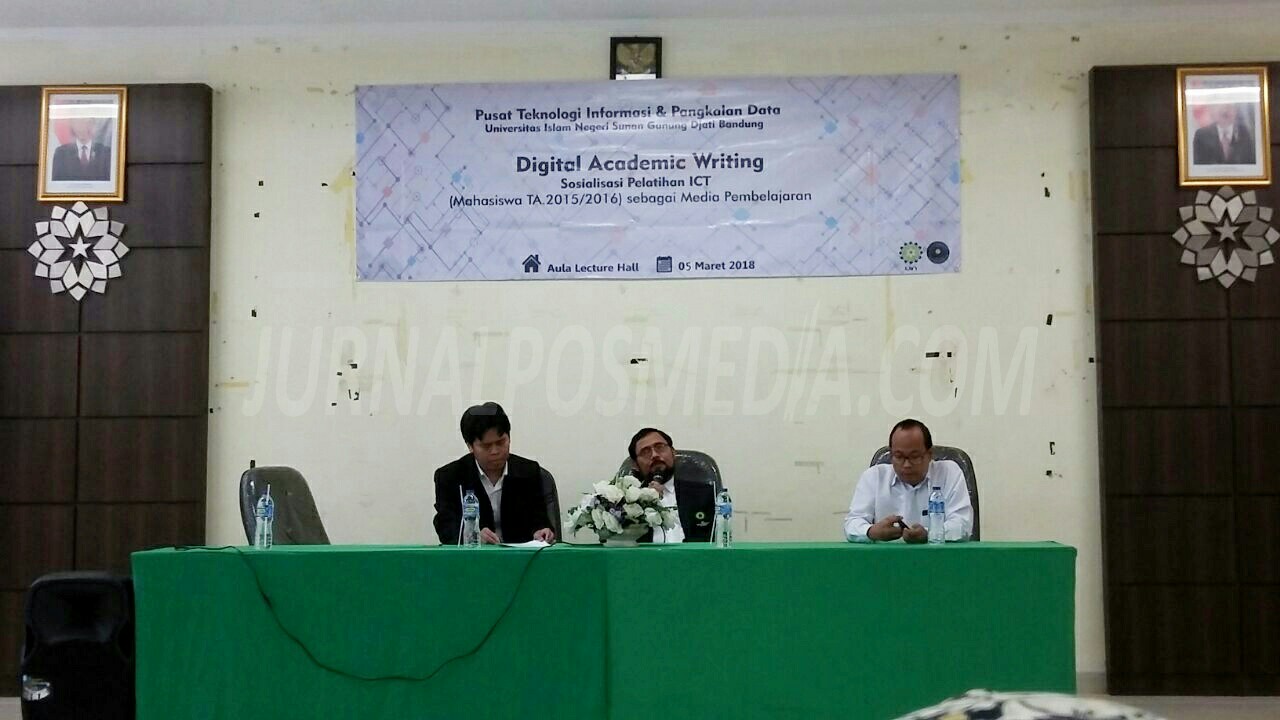 Program Information and Communication Technology (ICT) yang mengusung tema ‘Digital Academic Writing’ ini telah disahkan dan memiliki aturan normatif tersendiri. Tertuju pada Keputusan Rektor UIN Bandung No. 832/Un.05/IT/PP.00.9/10/2017, bahwa pelatihan tersebut wajib diikuti Mahasiswa UIN Bandung terhitung dari angkatan 2014 dan seterusnya.