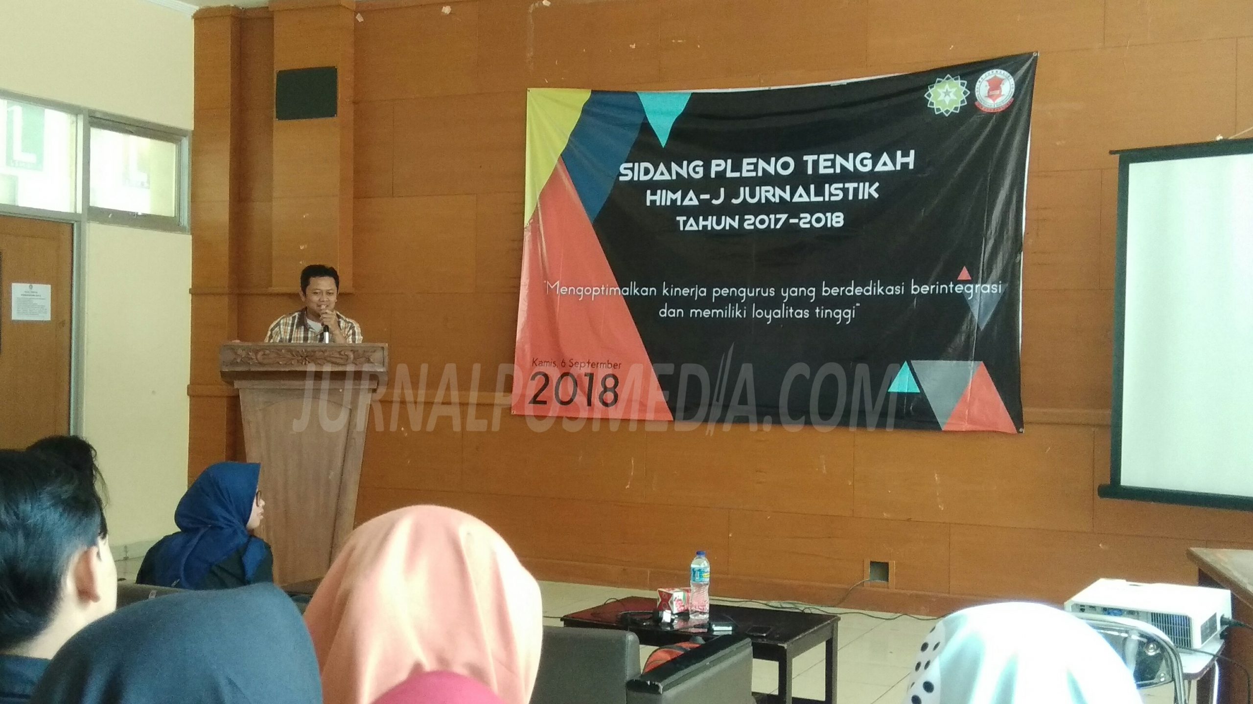 JURNALPOSMEDIA.COM –Berjalan setengah periode kepengurusan, Hima-J Jurnalistik kembali mengadakan Sidang Pleno Tengah Periode 2017/2018 yang mengusung tema “Mengoptimalkan Kinerja Pengurus yang Berdedikasi, Berintegrasi, dan Memiliki Loyalitas Tinggi”, di Aula Student Center, Kamis (6/9/2018).